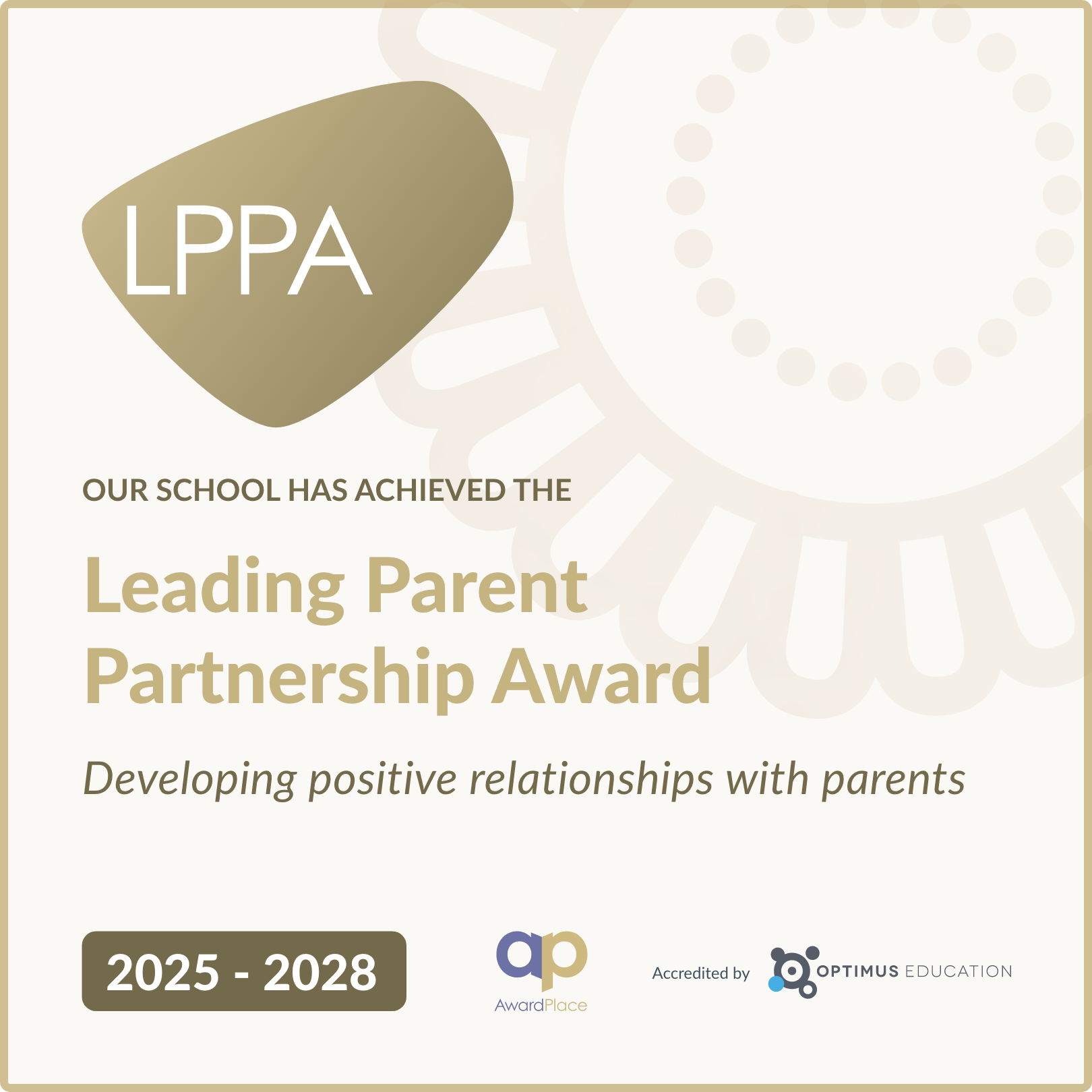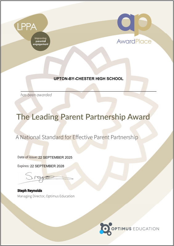 We are delighted to announce that we have achieved the Leading Parent Partnership Award. This award helps schools to work in partnership with all parents and carers, which in turn leads to improved learner progress, punctuality, attendance and behaviour.