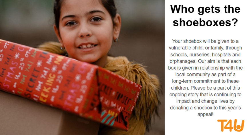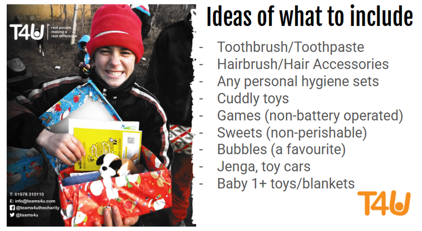 We are pleased to announce that we are working with Teams4U over the coming weeks to help and support others through the Christmas Shoebox Appeal.